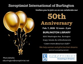 Please join us as we celebrate 50 years of service in making a difference for women, girls and our community. We will meet at the Burlington Library, from 12 noon to 2PM on February 7th, 2026. Refreshments provided.